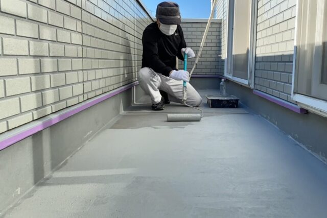 バルコニーは雨水が滞留しやすいため、防水層の厚み・連続性の確認が必要です。